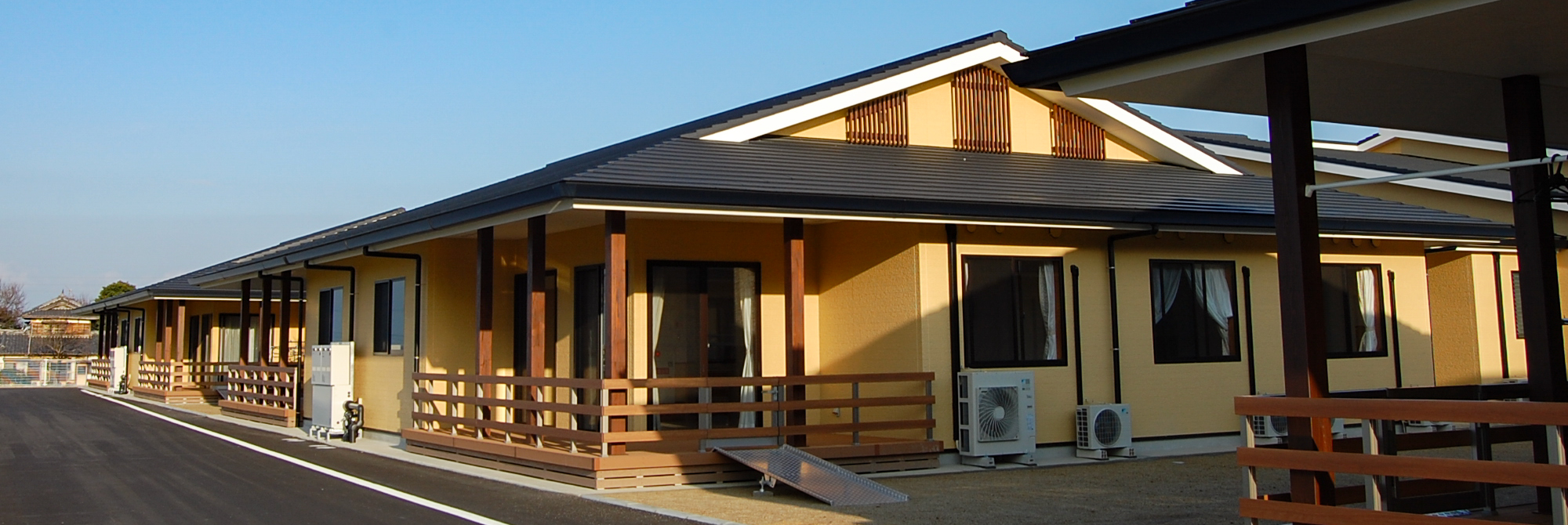 私たちは、永年社会の発展のため尽力されてこられた介護を必要とされる方々に対し、住み慣れた地域の中でその人格を尊重しプライバシーを守り、職員が一丸となって心身の不自由や病弱をカバーして快適な日常生活を過ごし、社会復帰を目指していただけるよう援助を行っています。